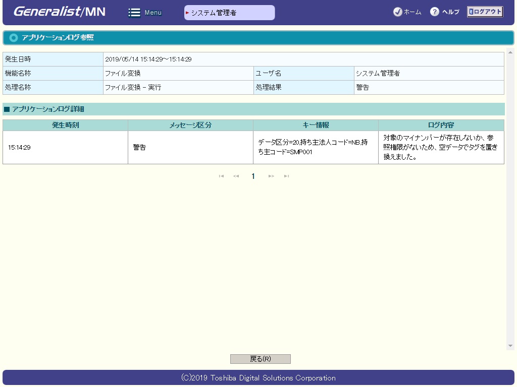 アプリケーションログ検索画面に戻ります。 |