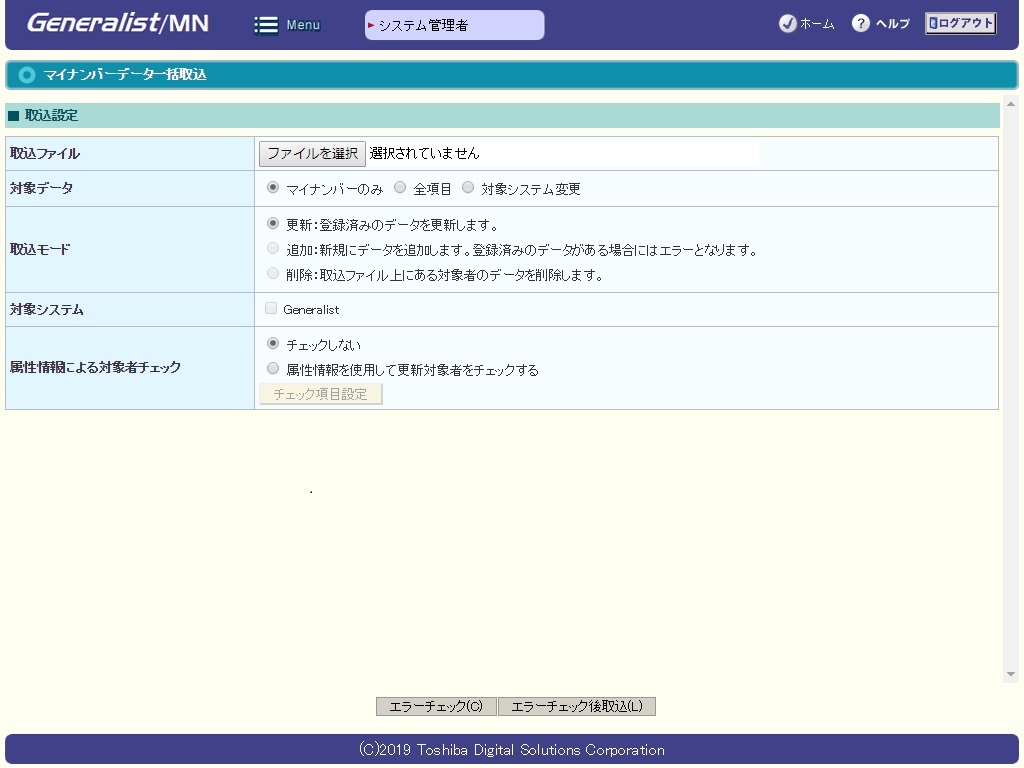 ファイルのチェックを実施後、ファイル取込を実行します。 |