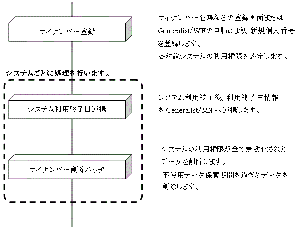 ・ マイナンバーの登録から削除までの運用イメージは以下のとおりです。