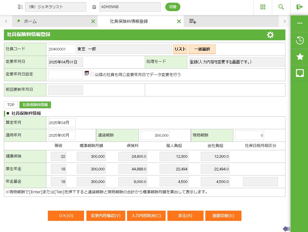 社員保険料情報 |