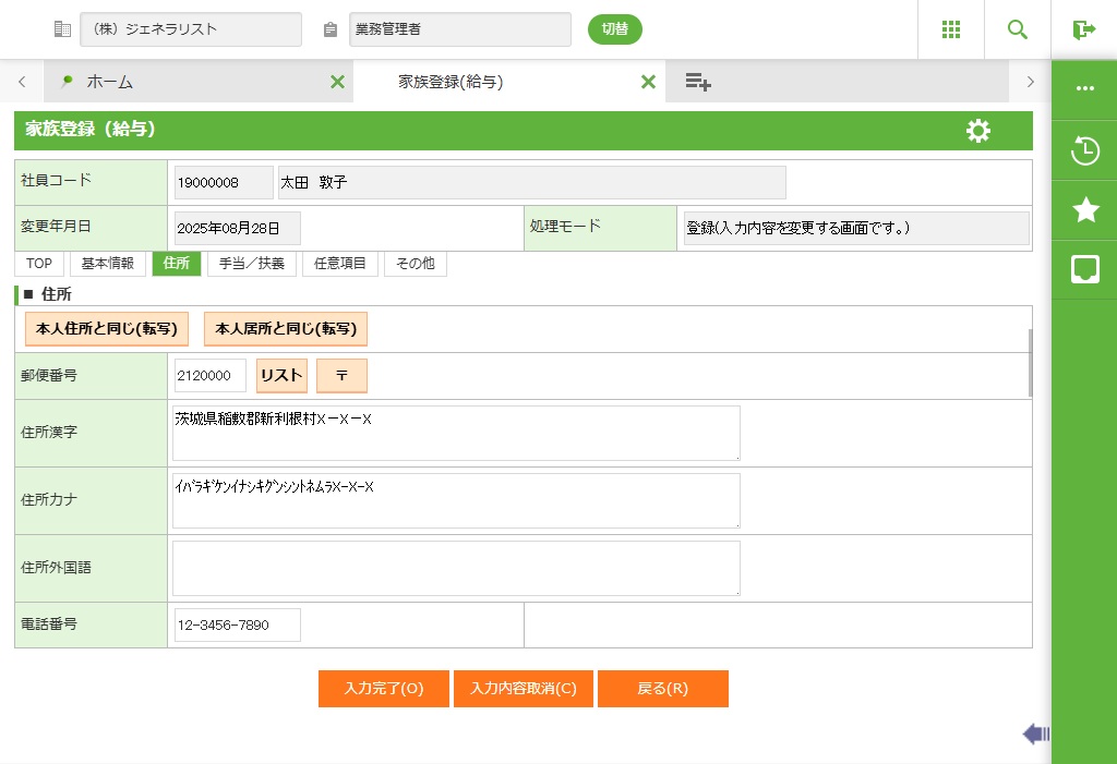 3.1.45.1 一覧画面/ 3.1.45.2 家族登録(給与)【基本情報】/ 3.1.45.3 家族登録(給与)【住所】/ 3.1.45.4 家族登録(給与)【手当/扶養】/ 3.1.45.5 家族登録(給与)【任意項目】/ 3.1.45.6 家族登録(給与)【その他】