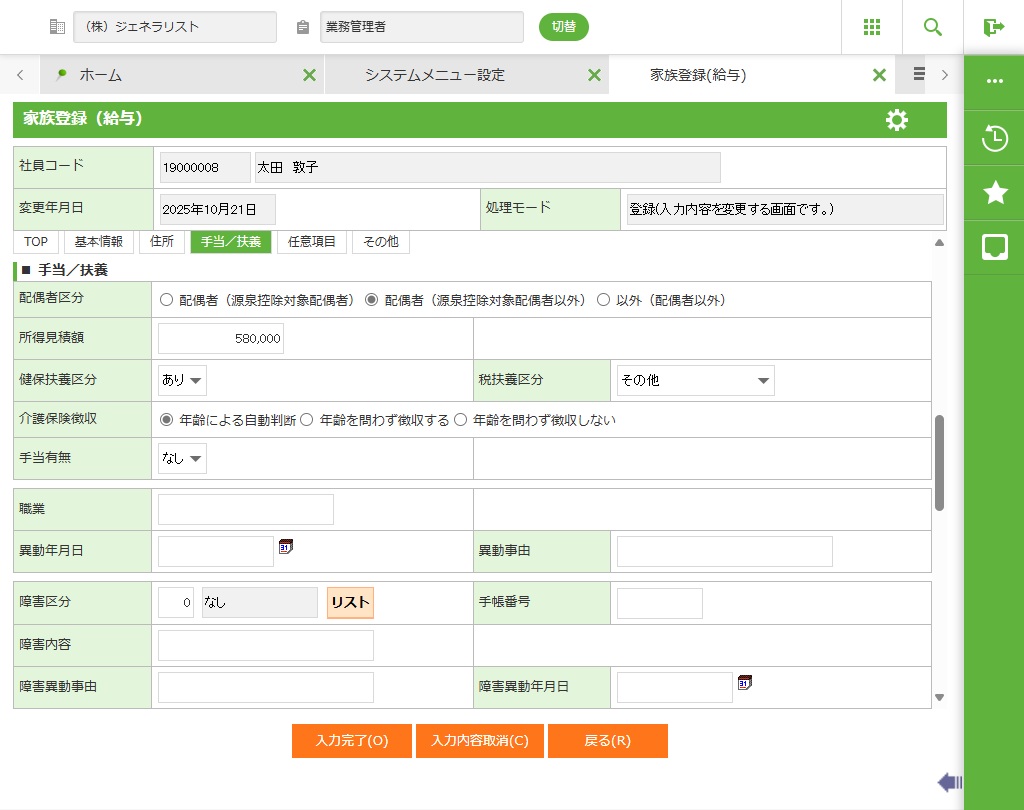- 「所得見積額」による「健保扶養区分」の自動設定