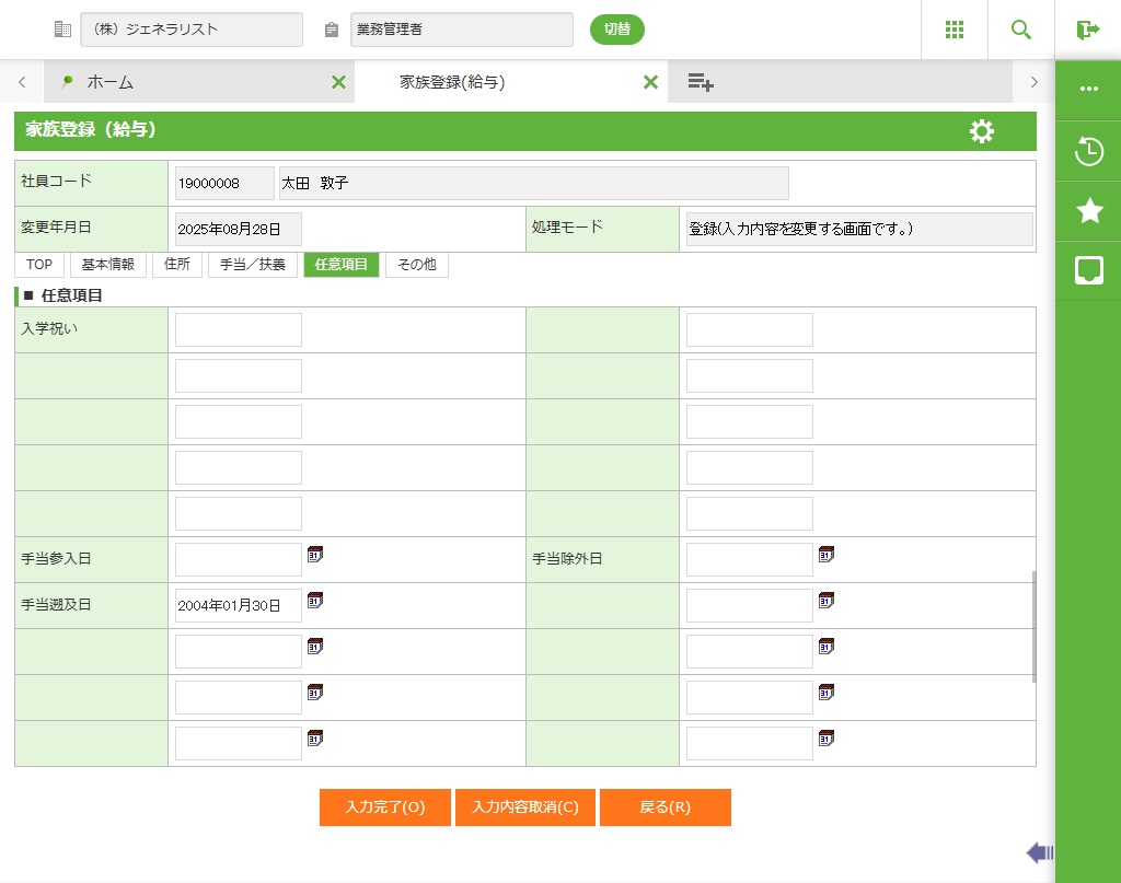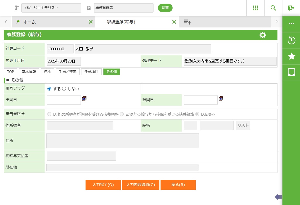 以下の運用をしている場合、「健保扶養区分」は年齢要件、年間収入要件に応じて正しく設定してください。