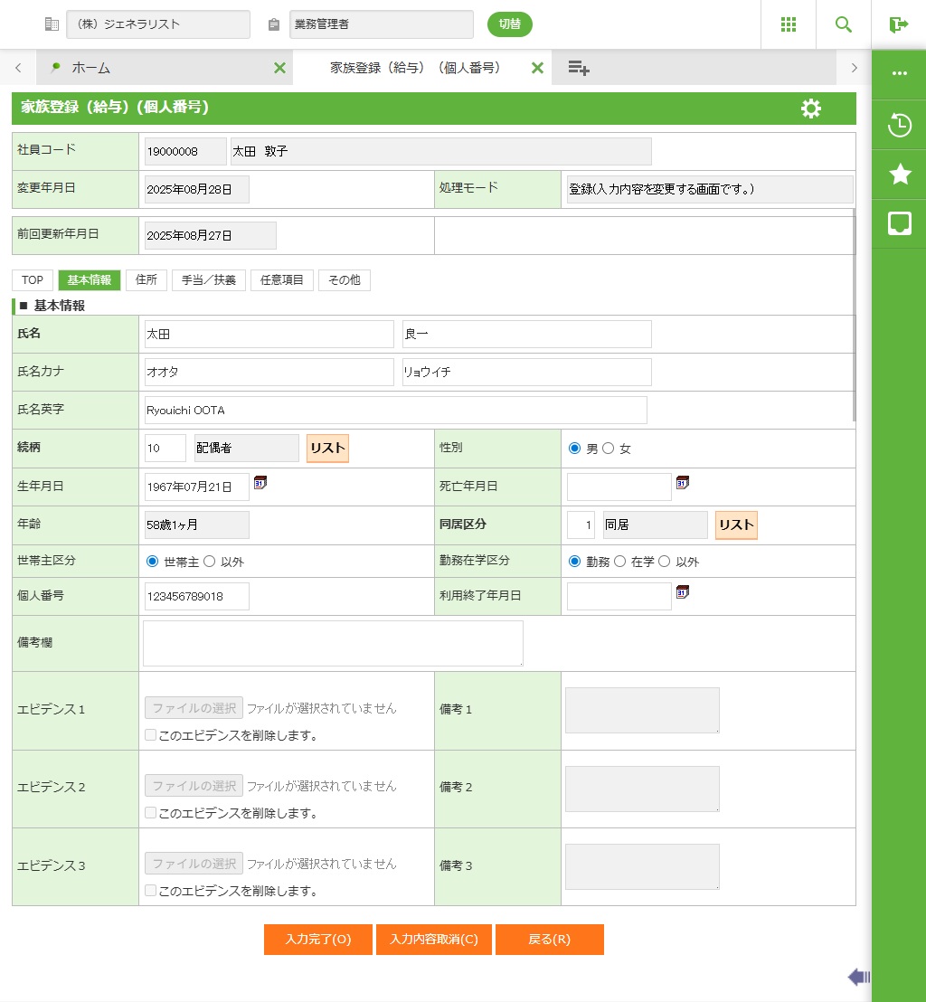 「家族登録(個人番号)(2.1.40)」でもこのパラメータによってエビデンス入力の有効/無効が切り替わります。