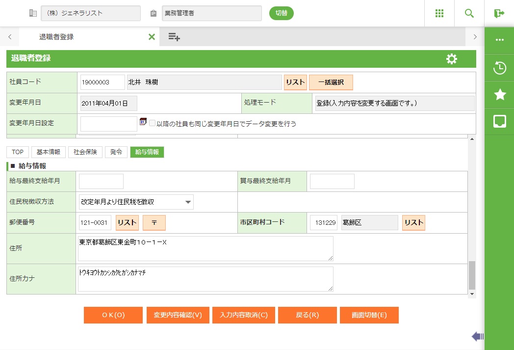退職者の給与側の基本情報を登録します。