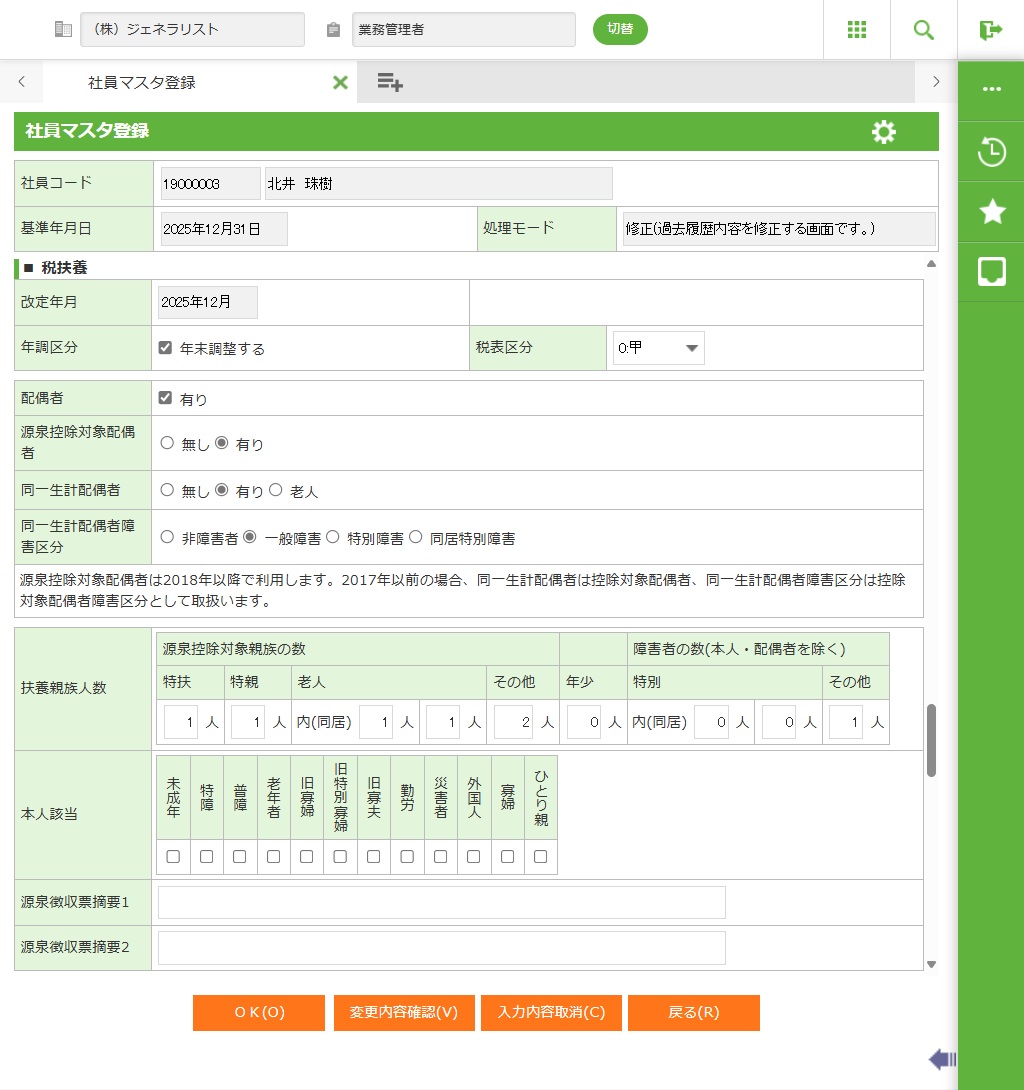 ・ 令和8年以降、特定親族は「特扶」(特定扶養親族:年齢19歳以上23歳未満、所得58万円以下)と「特親」(源泉控除対象親族の特定親族:年齢19歳以上23歳未満、所得58万円超100万円以下)で管理します。