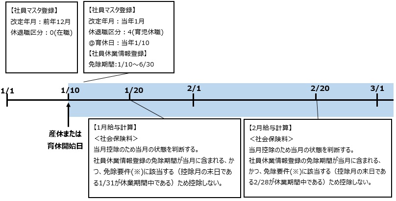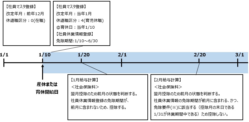 (※)社会保険料免除要件は3.4.1 概要の「3.4.1.1 産休および育休者の社会保険料について」を参照してください。