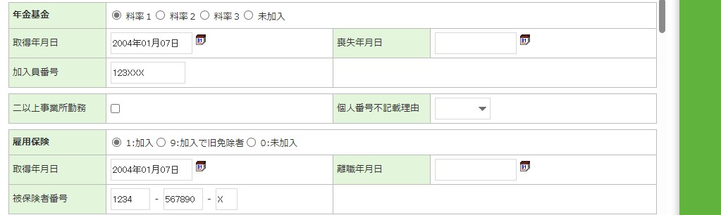 (4) 健保加入区分→健康保険料を徴収しない場合は0(未加入)