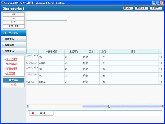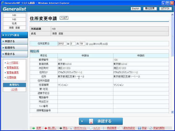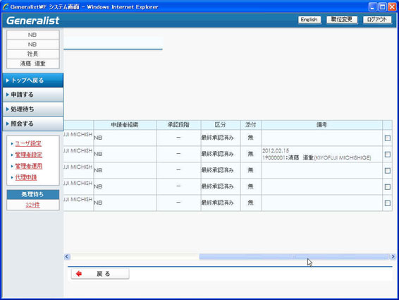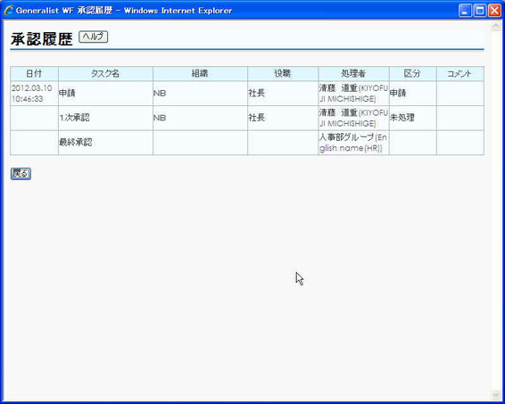 承認履歴画面