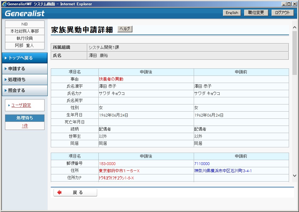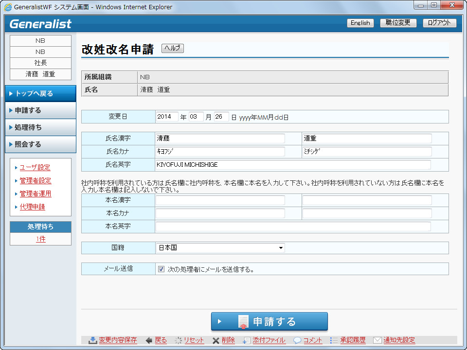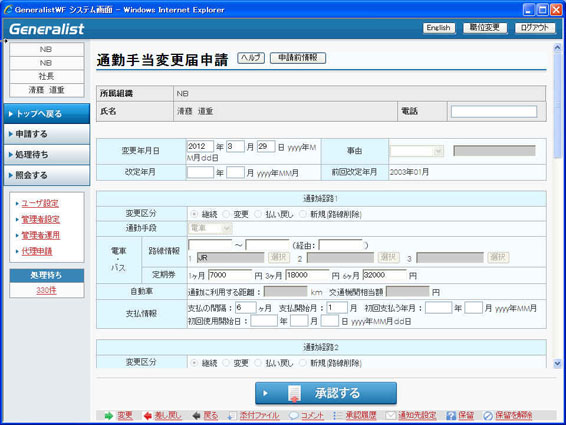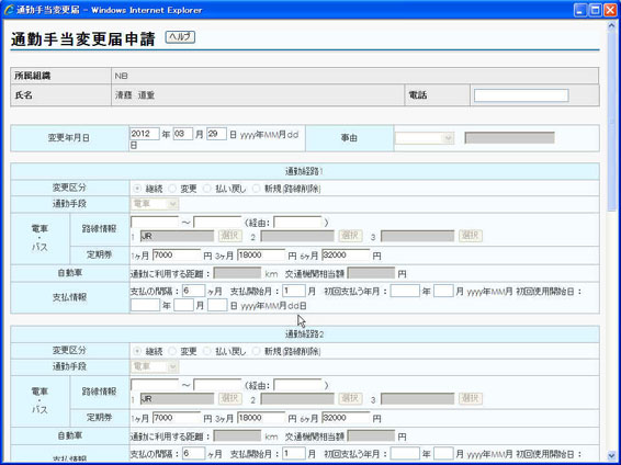 申請入力 変更画面