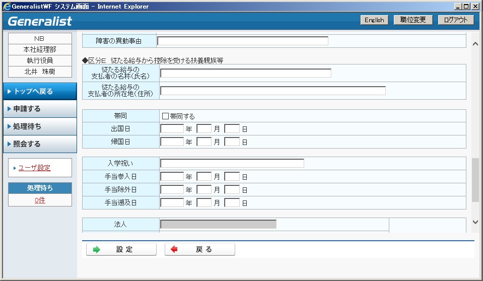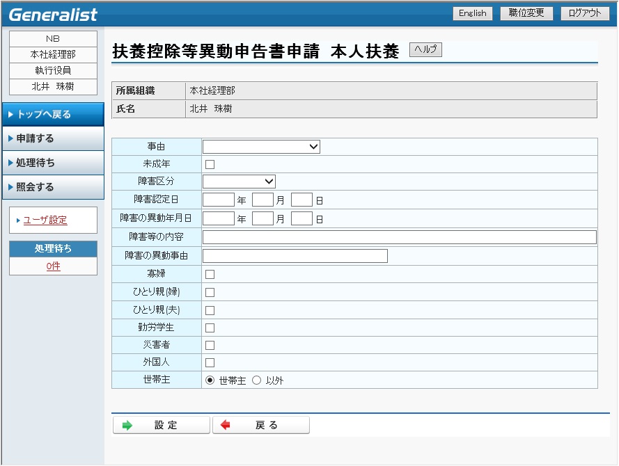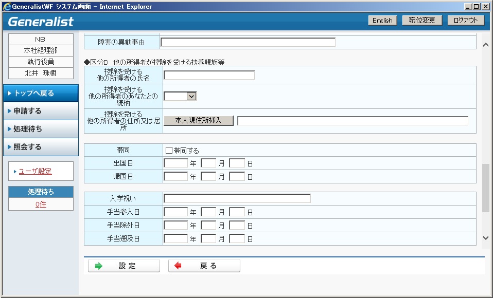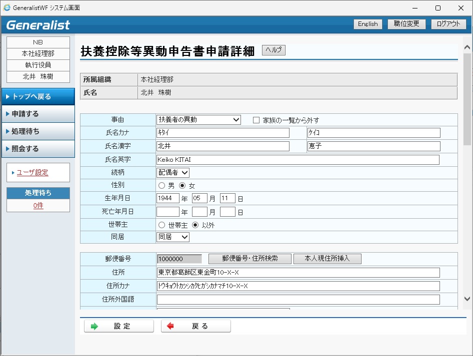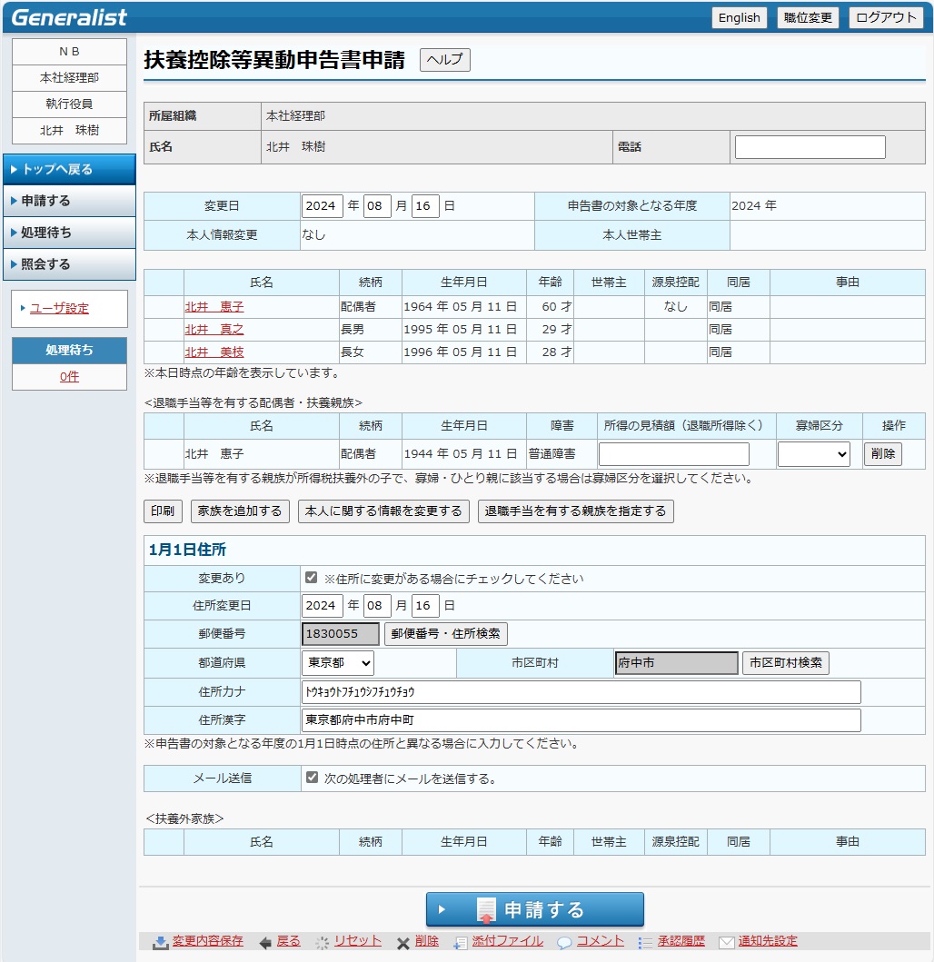 家族異動申請として利用するには、「13.4.3 家族異動申請」を参照してください。
