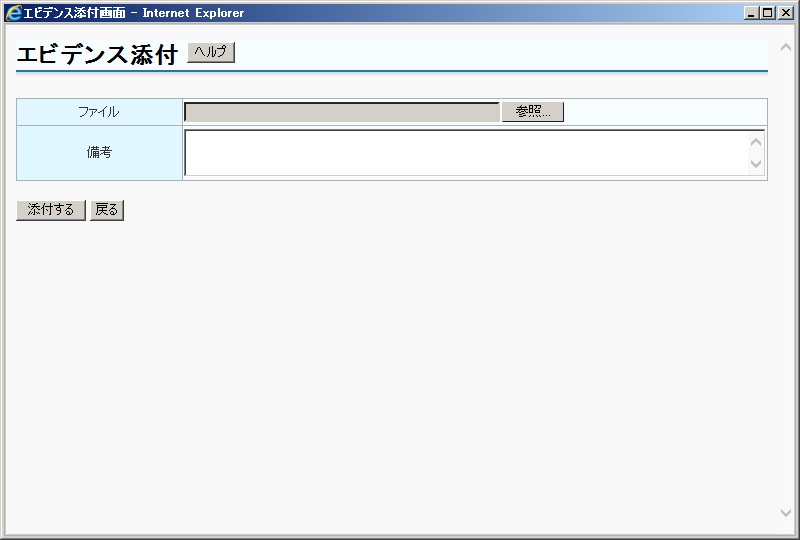 エビデンスに関係する備考を入力します。 |