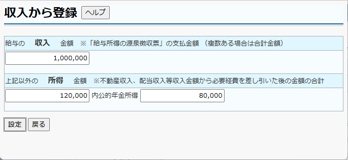 入力された金額より所得金額を算出し、詳細画面の所得見積額に設定します。 |