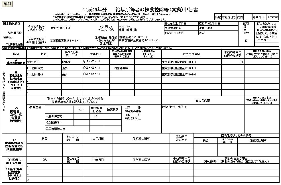 扶養控除異動申告書を印刷します。(※1) |