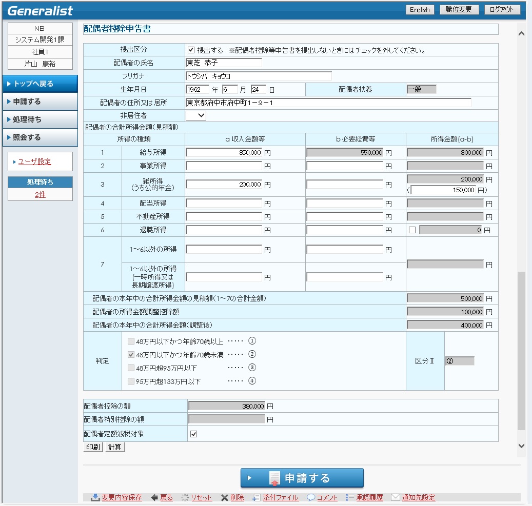 13.4.21.3 配偶者控除申告書画面