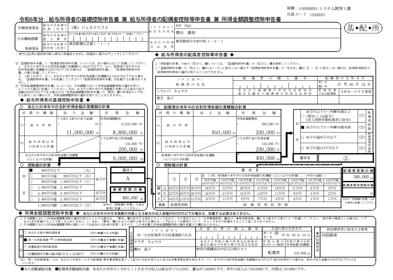 給与所得者の基礎控除申告書 兼 給与所得者の配偶者控除等申告書 兼 所得金額調整控除申告書