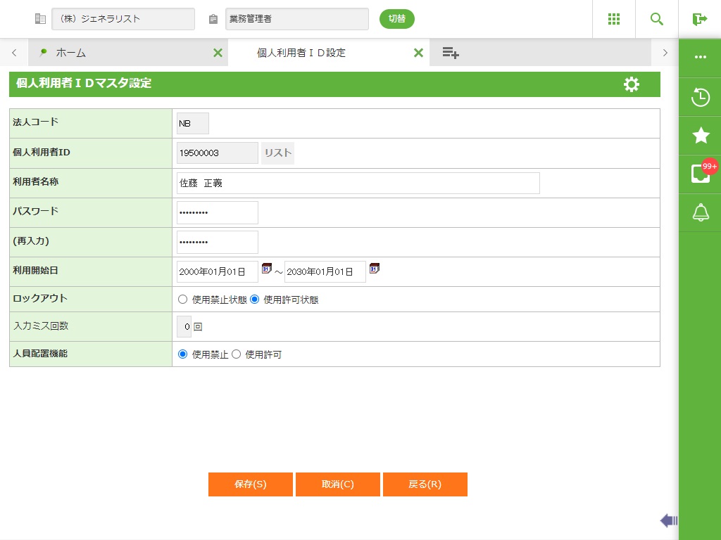 1.1.21.6 利用許可社員リスト個別登録画面/