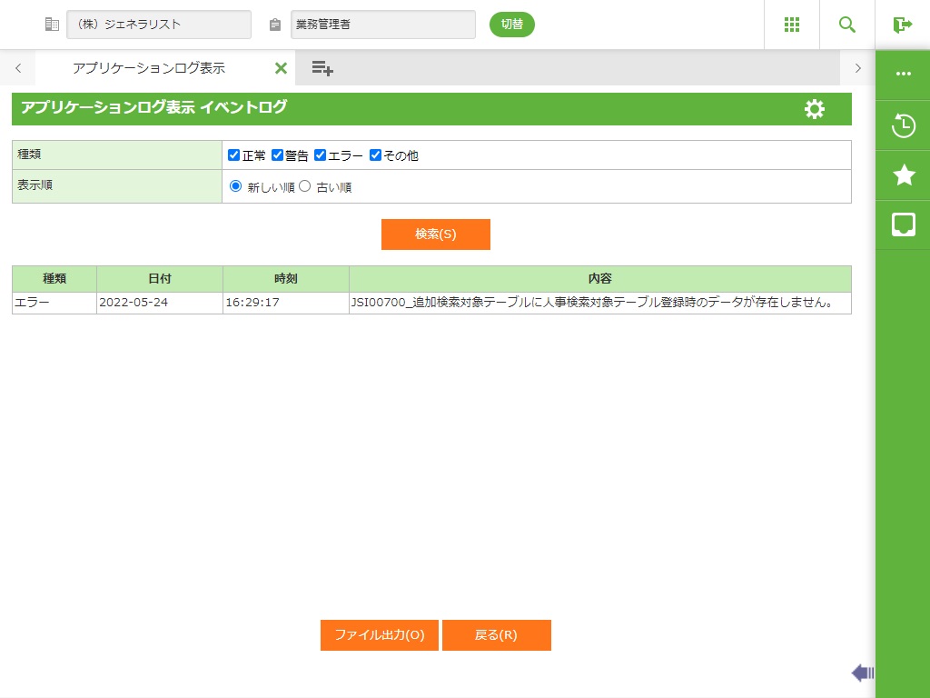 ・ 機能を実行してエラーが発生した場合、アプリケーションログ表示機能が起動する場合があります。
