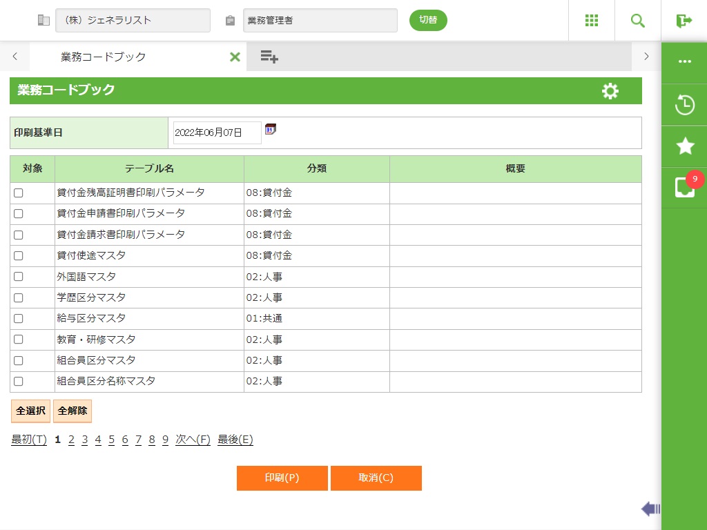 対象にチェックしたマスタを、一括ですべて印刷します。
