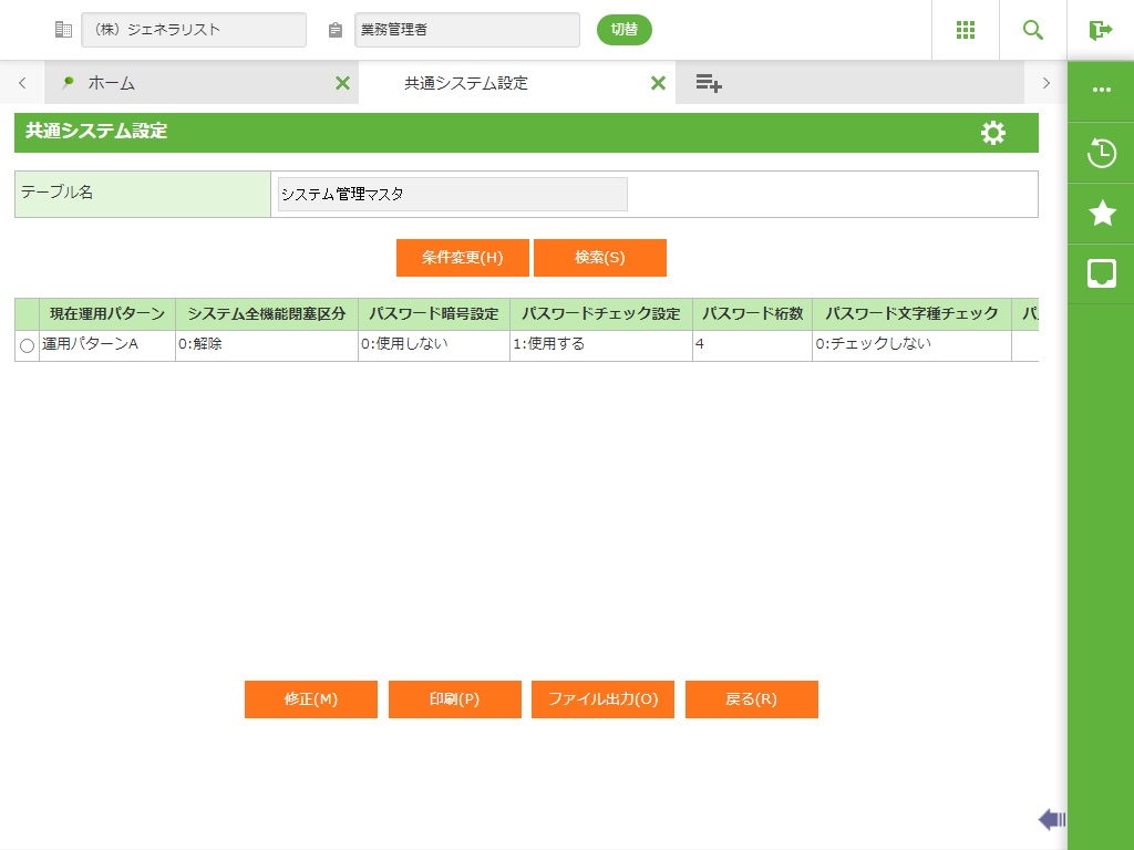 運用パターンを選択します。 システム導入時のデフォルトでは「運用パターンA」が設定されています。 |