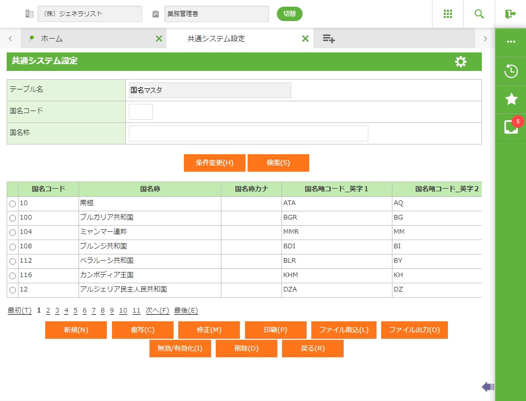 国名マスタの情報を新規登録します。詳細画面が表示されます。 |