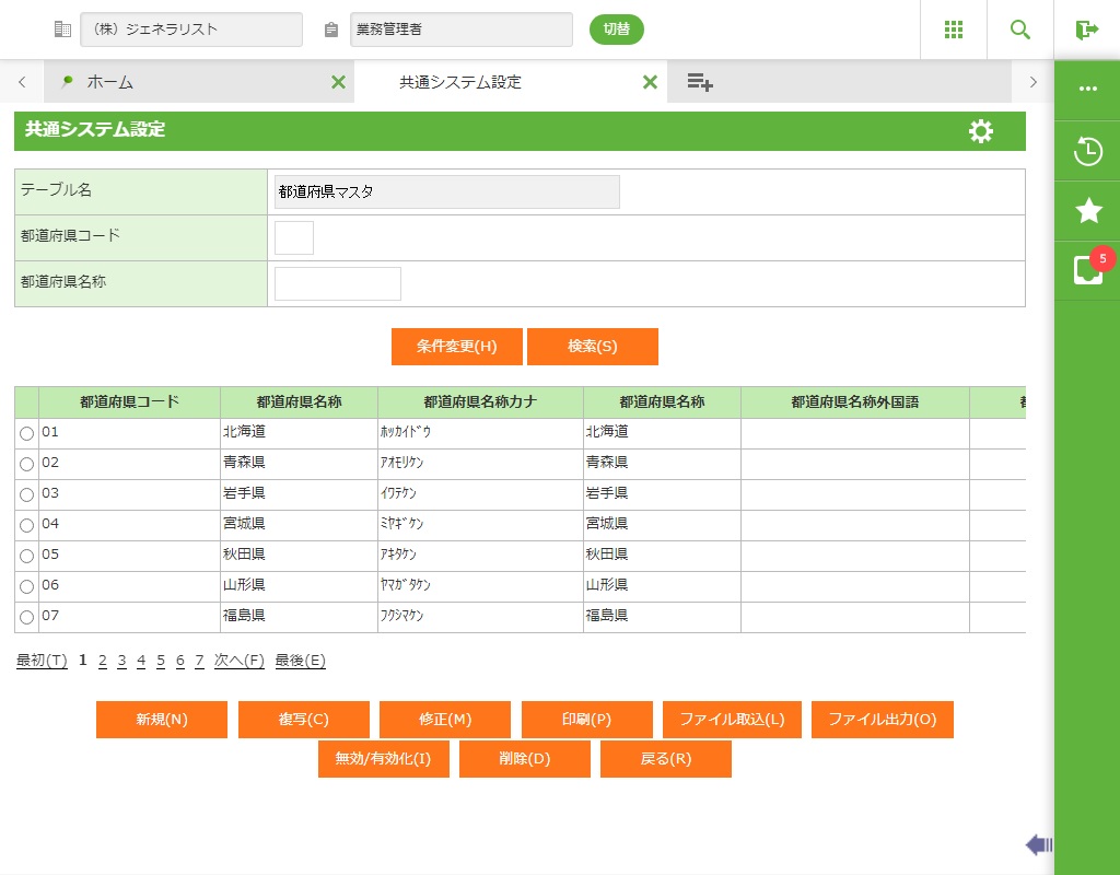 登録されている都道府県コードの一覧が表示されます。 |