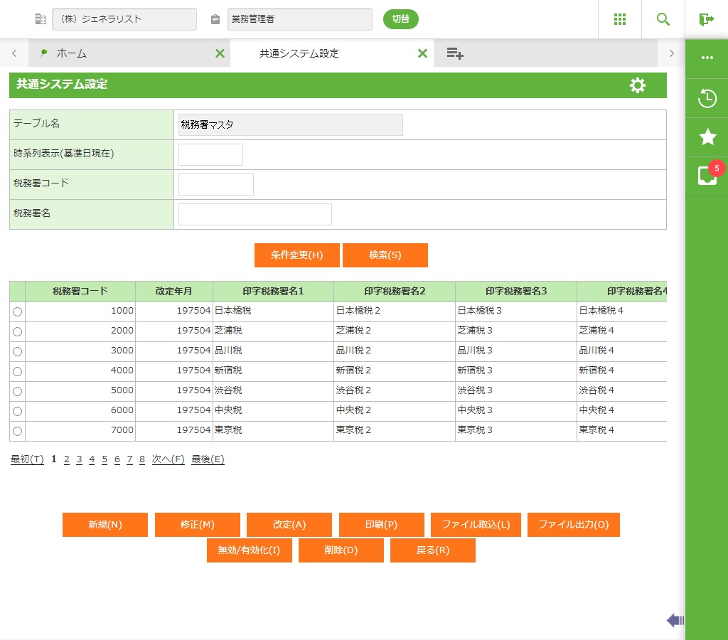税務署コードの情報の改定を作成します。詳細画面が表示されます。 |