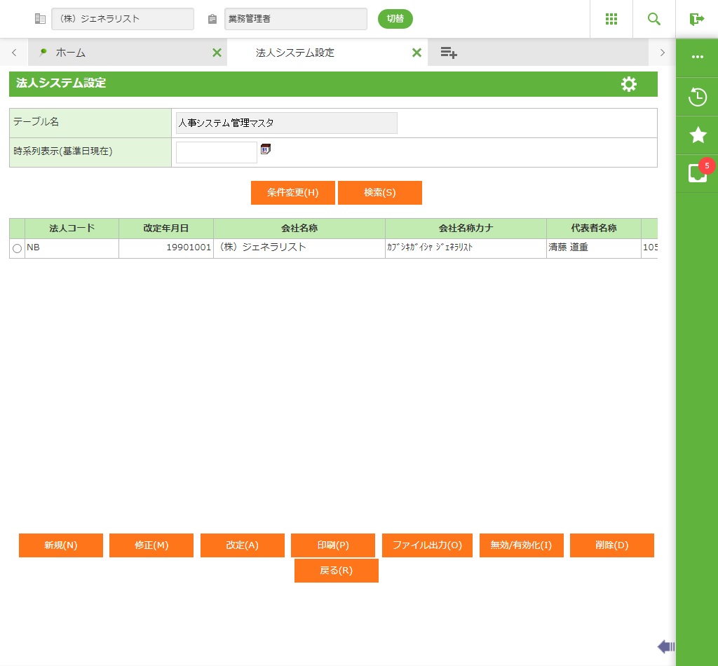 人事システム管理マスタの情報を新規登録します。詳細画面が表示されます。 |