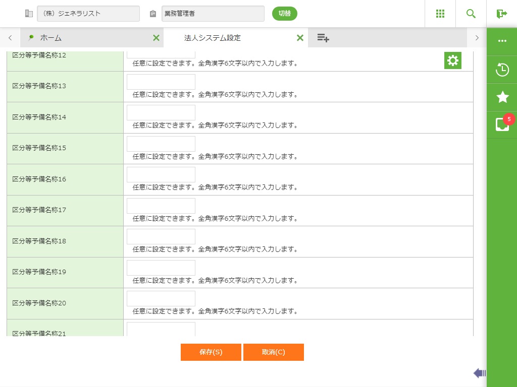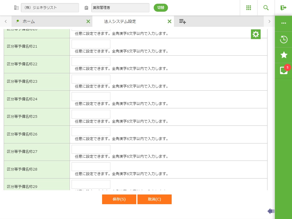 ・ 以下機能で利用します。区分等予備名称の任意の区分等予備名称を1つ決め、“@育休日”、“@帳票育休日”、“@育休復職日”を設定します。
