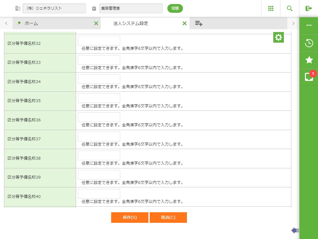 任意に設定できます。全角漢字6文字以内で入力します。 |
