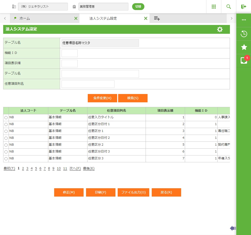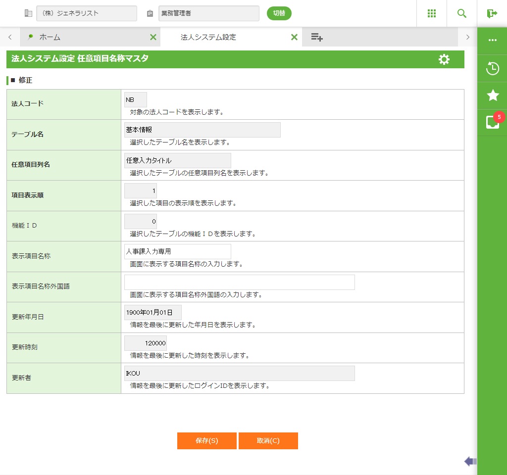 ・ 基本情報(テーブル名)の任意入力タイトル(任意項目列名)は、V04.01まで使用していた任意項目です。V5では使用していません。