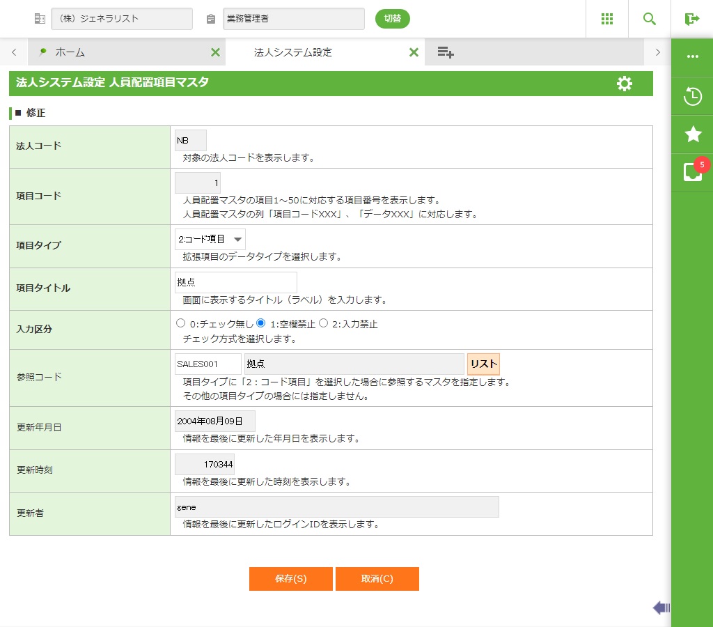 人員配置マスタに対する標準の項目以外に追加で管理項目を登録できます。