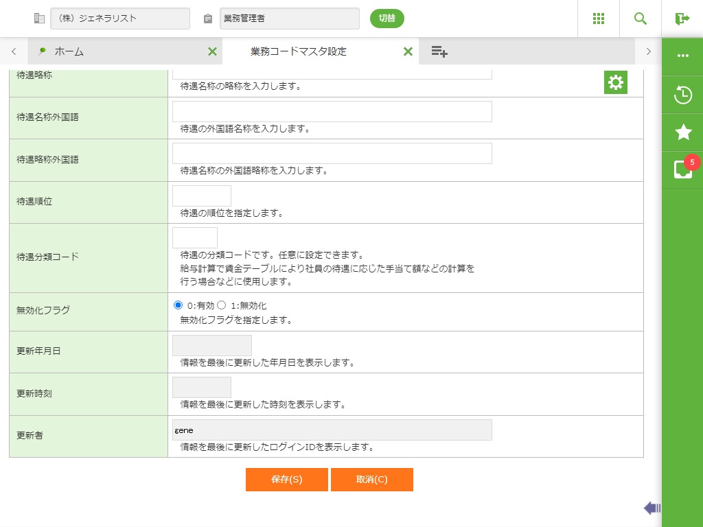 待遇マスタを新規登録します。詳細画面が表示されます。 |