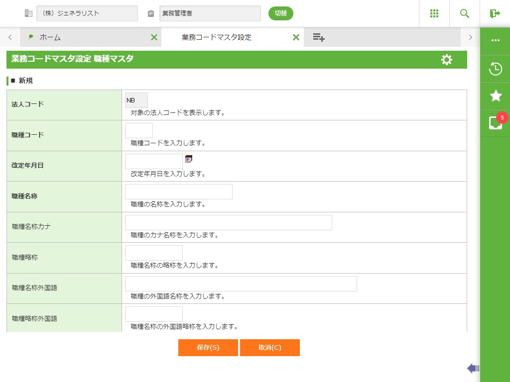 職種マスタを新規登録します。詳細画面が表示されます。 |