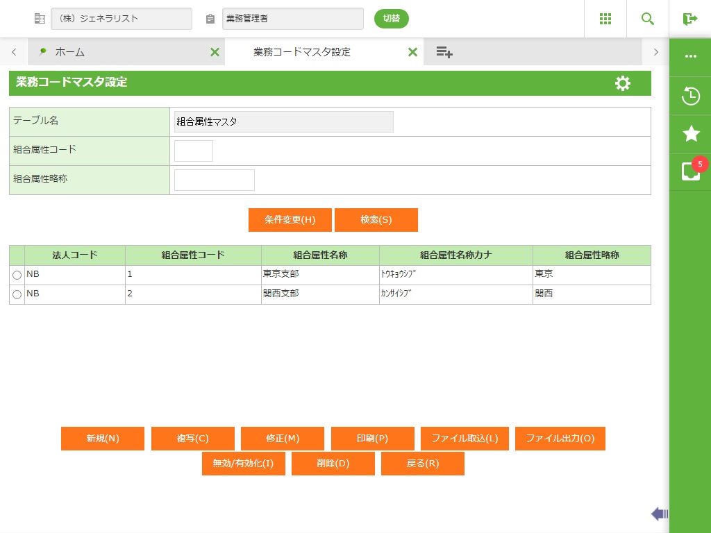 組合属性マスタを新規登録します。詳細画面が表示されます。 |