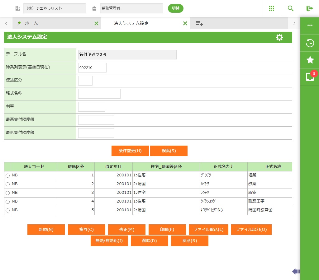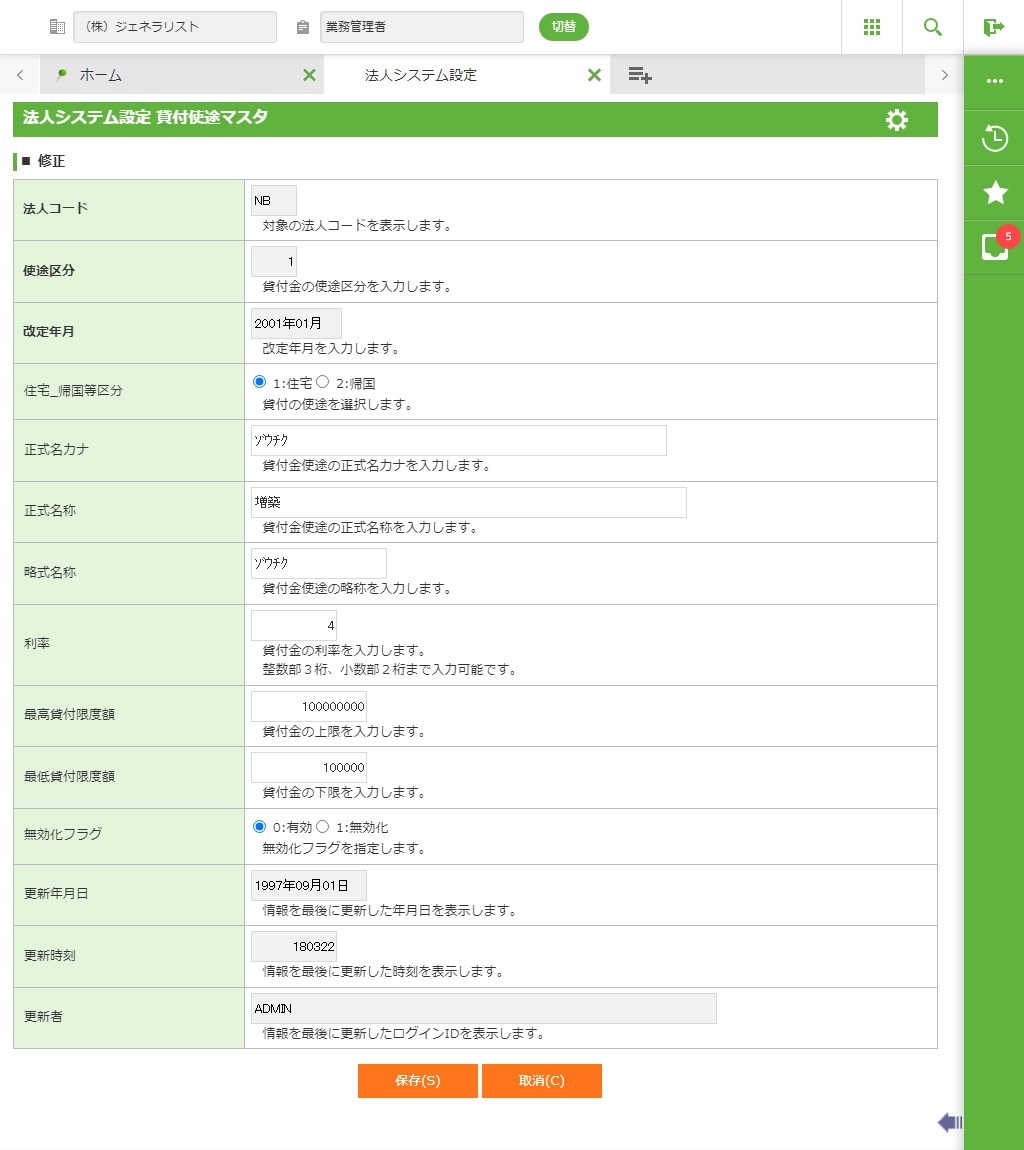 ・ Generalistでは税計算などで、貸付金サブシステムの使途区分は参照していません。