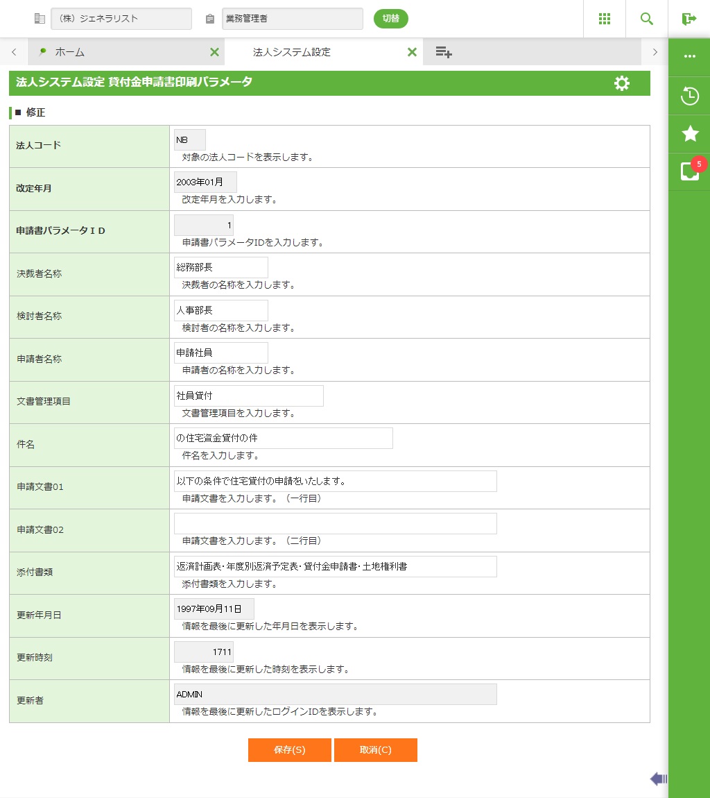 表示されているデータを保存します。保存後、一覧画面に戻ります。 |