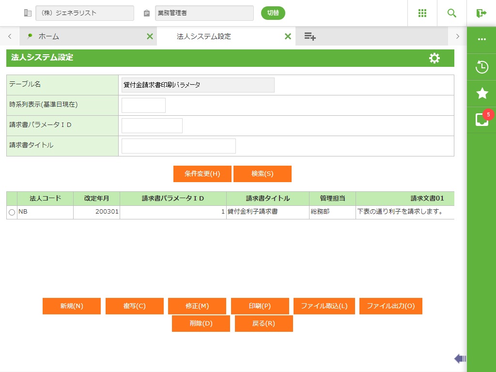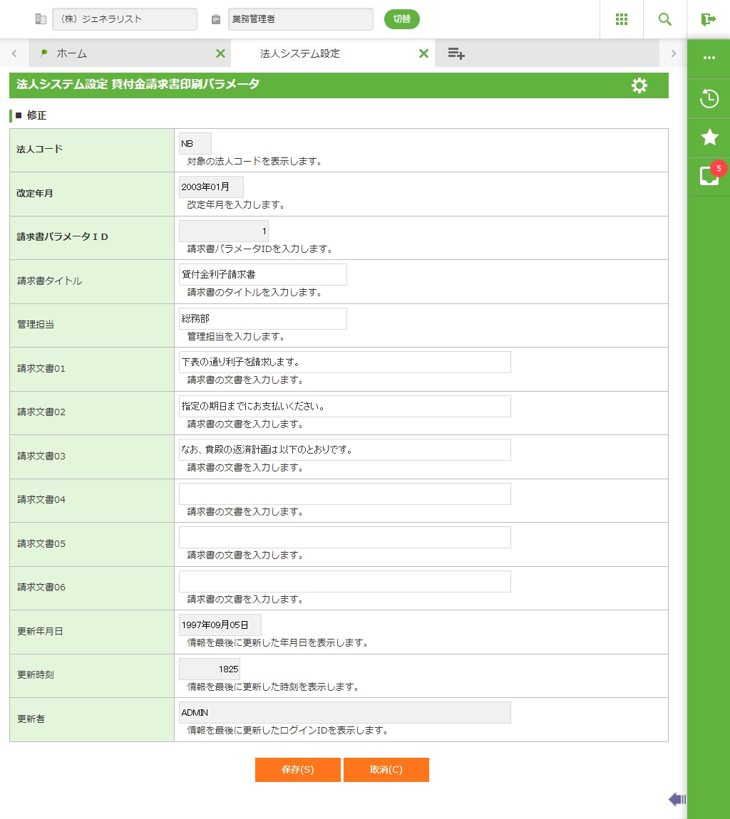 貸付金請求書の印刷パラメータを保守します。