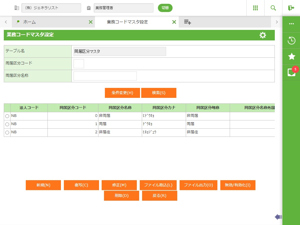 同居区分マスタを新規登録します。詳細画面が表示されます。 |