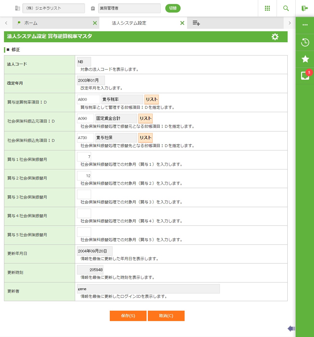 賞与逆算税率 項目ID |