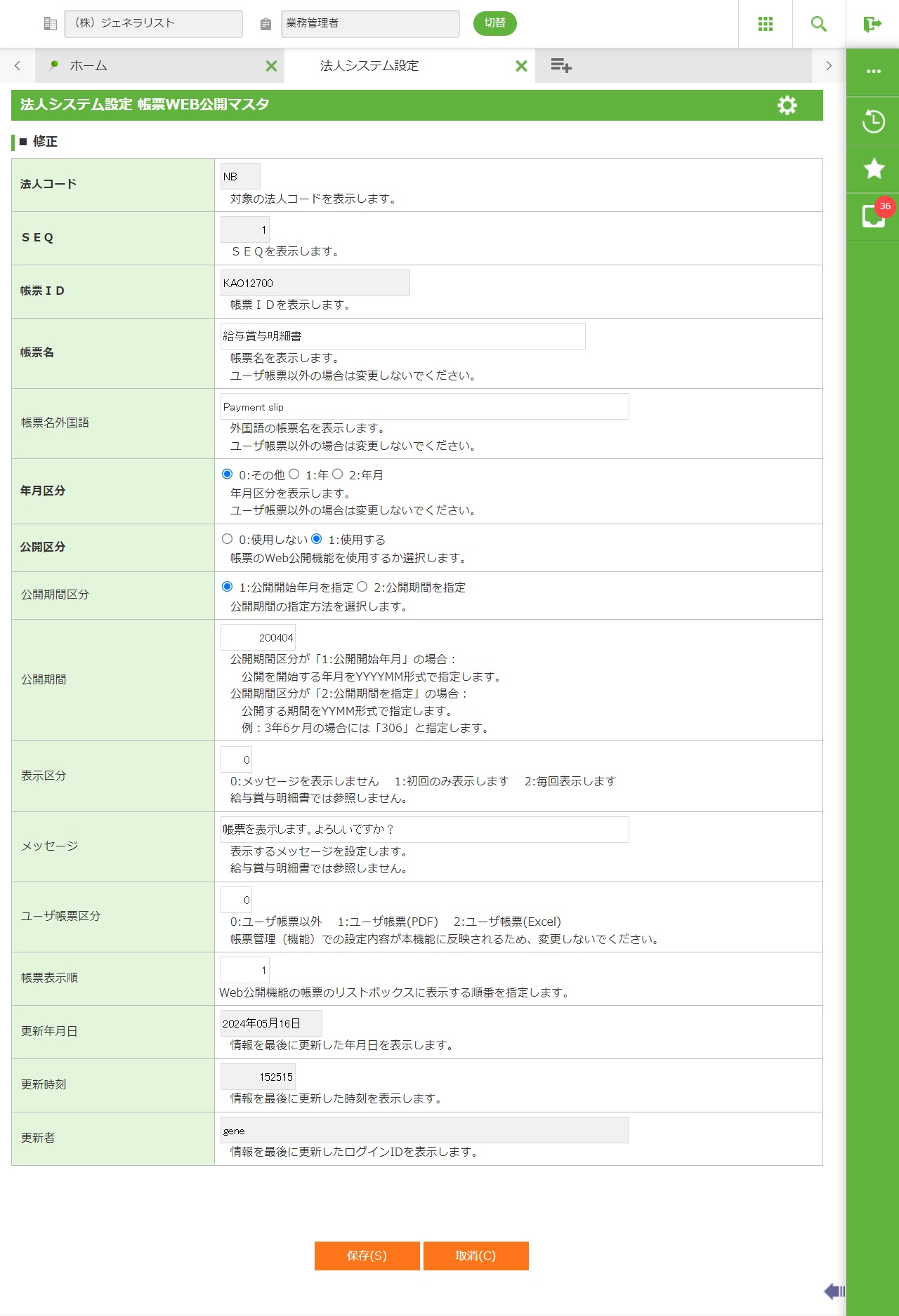個人利用者で利用可能な帳票Web公開を使用するかどうかを入力します。 |