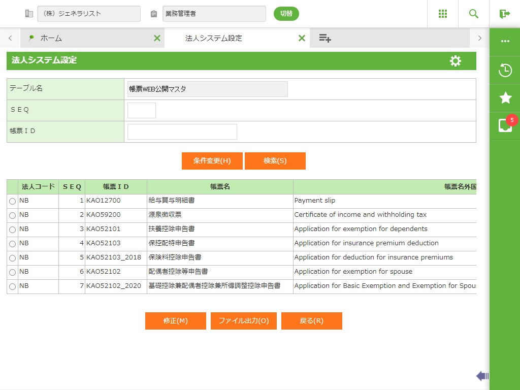 帳票Web公開を行う帳票名外国語を入力します。 |