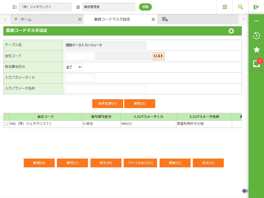 ・ (5.4.11)控除データ取込修正で表示する項目をパラメータID単位で設定します。