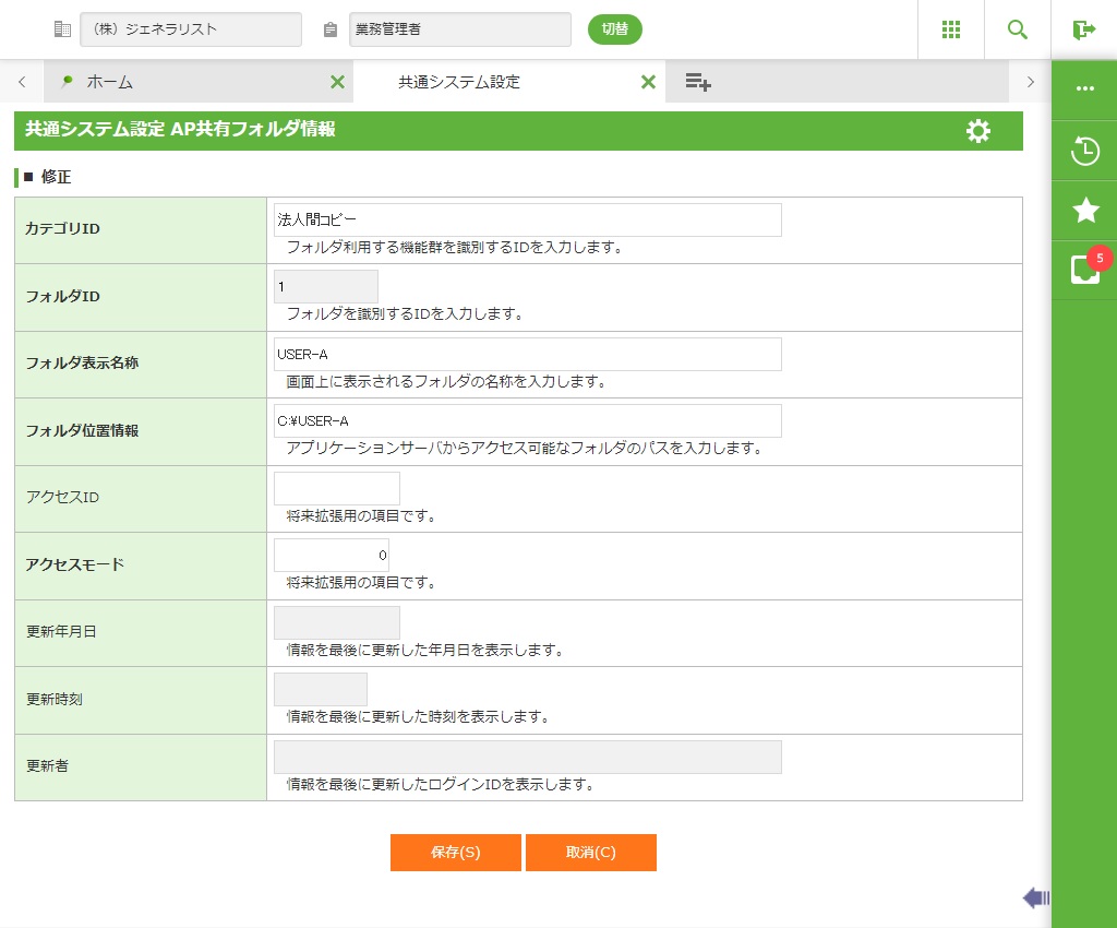 アプリケーションサーバ上のアクセス可能なフォルダのパスを入力します。 | 256 |