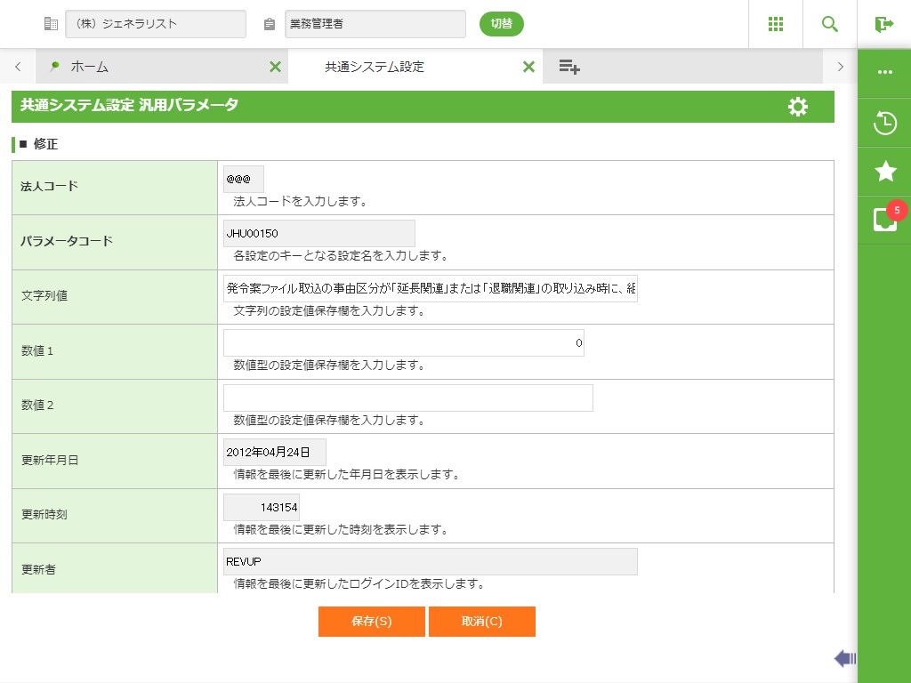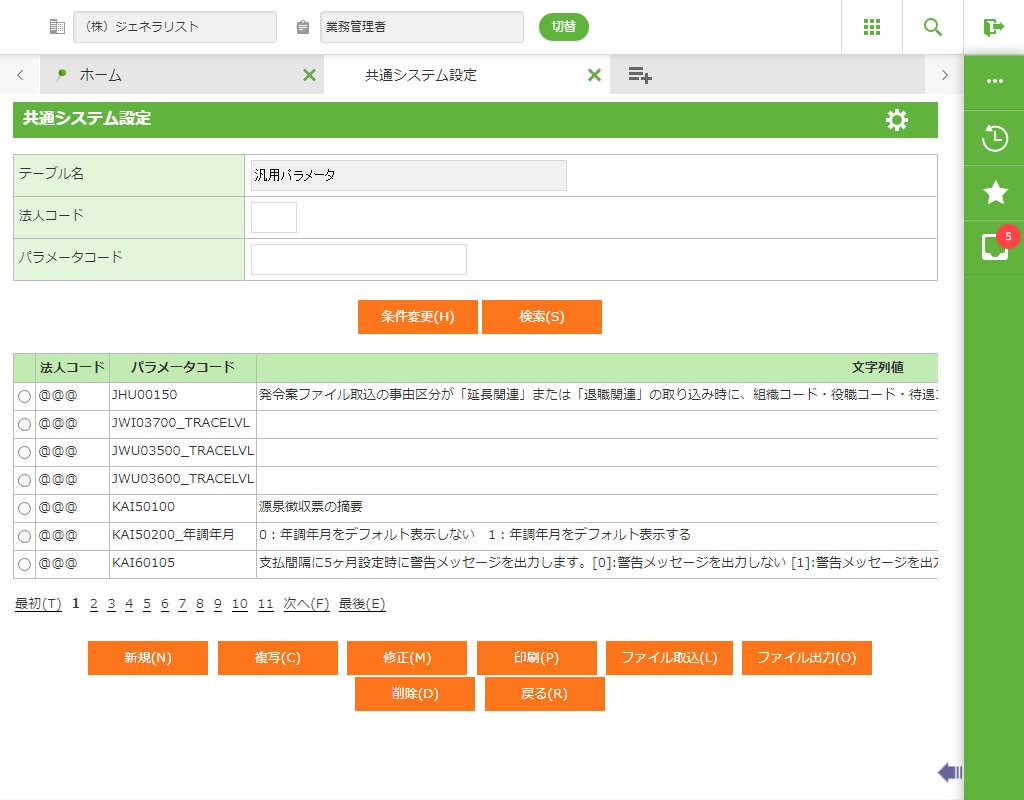法人コード/パラメータコード/設定項目 |