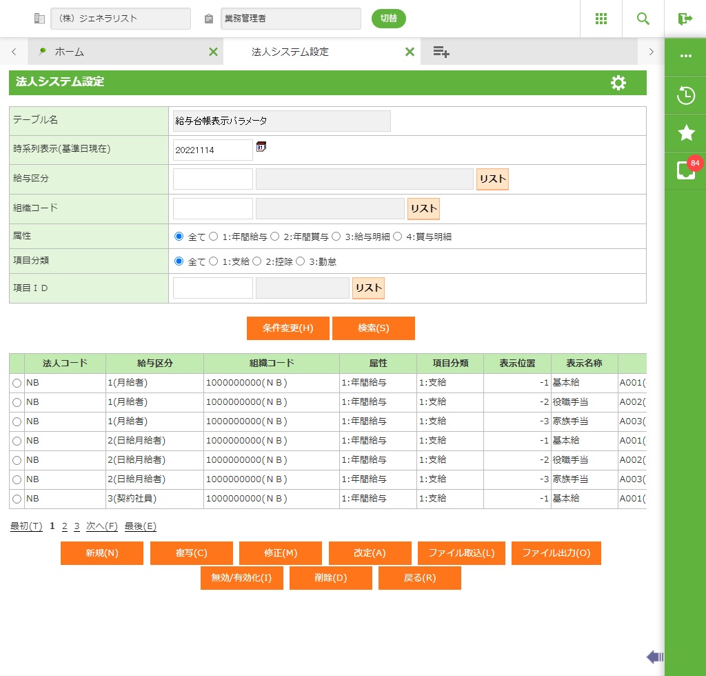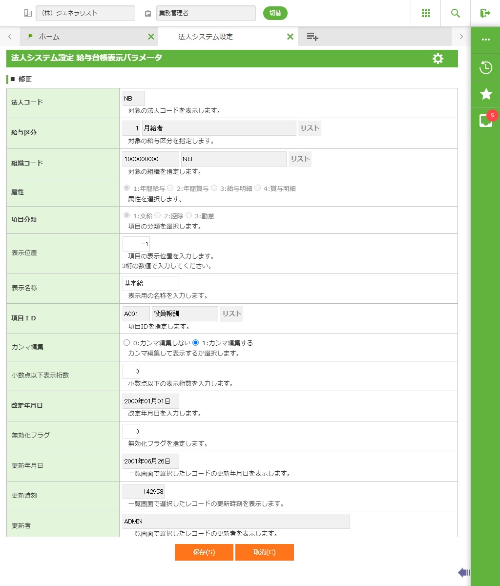 給与表示パラメータの情報を新規登録します。詳細画面が表示されます。 |