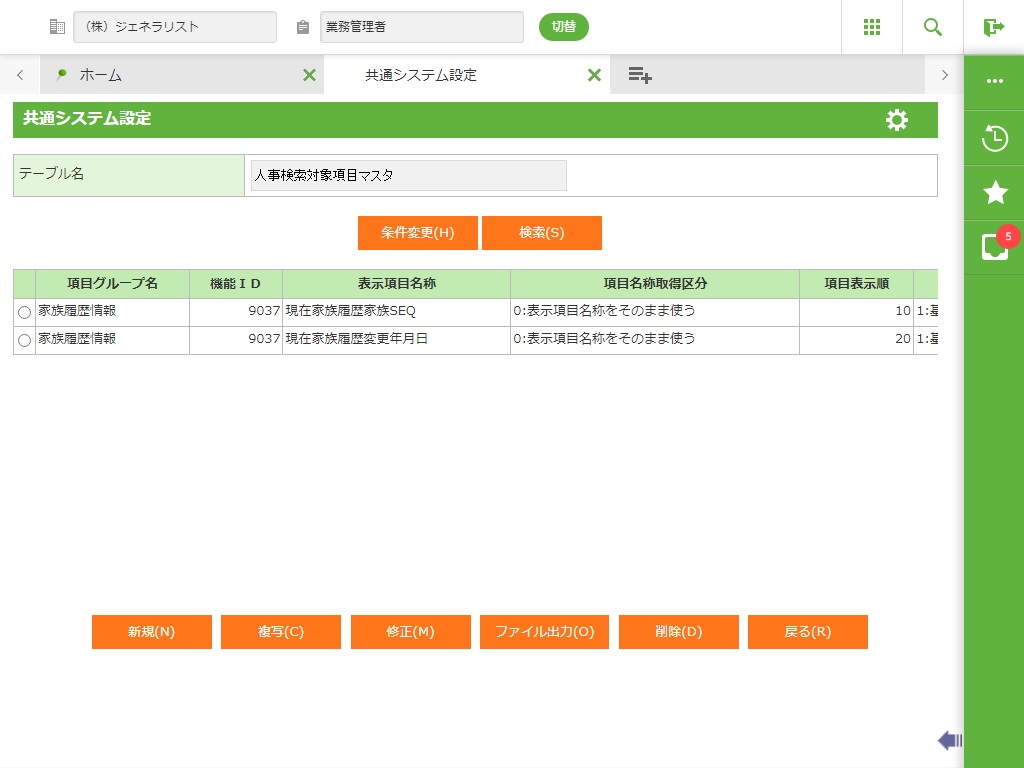 ・ Generalist/HR/PR標準で用意している検索・出力項目を修正することはできません。