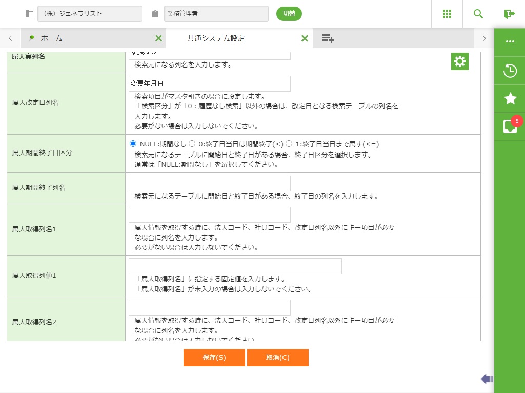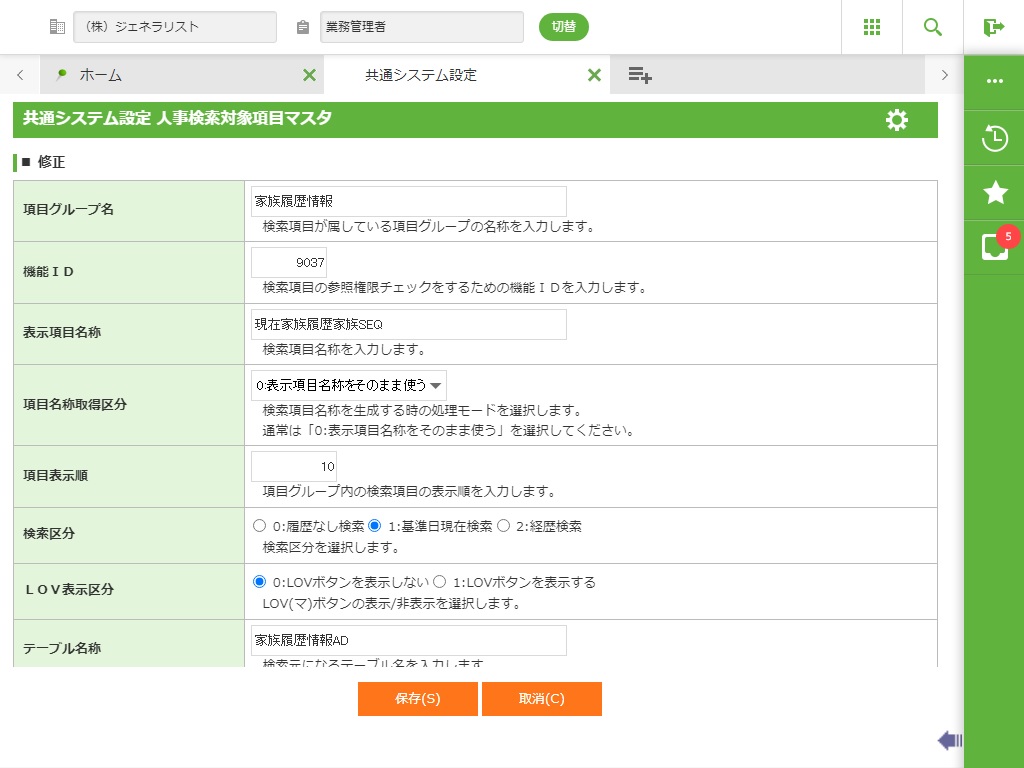 ・ 検索・出力項目の修正を行った場合は表示項目名称が重複する可能性があるため、「人事検索対象テーブル登録(2.6.11)」にてエラーチェック処理を行ってください。