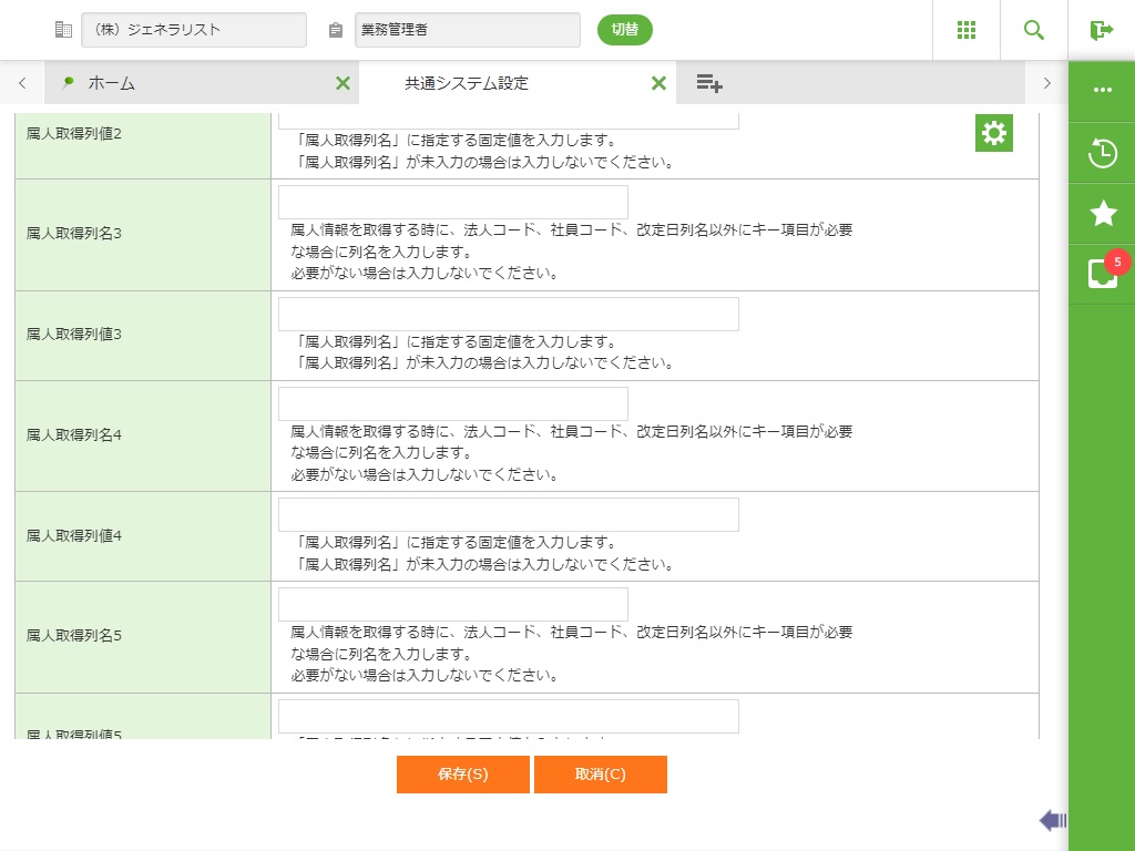 属人情報を取得する時に、法人コード、社員コード、改定日列名以外にキー項目が必要な場合に列名を入力します。 |