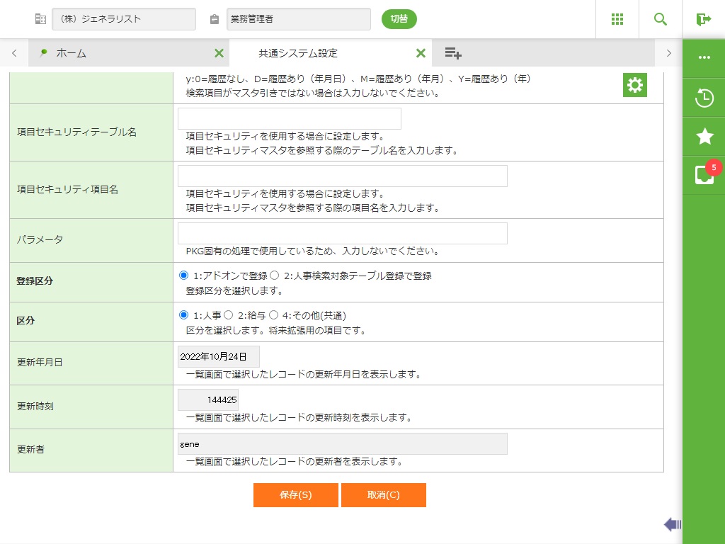 ・ 「人事検索対象テーブル登録(2.6.11)」で登録した検索・出力項目設定に対して以下の変更を行う場合にのみ本機能を使用してください。